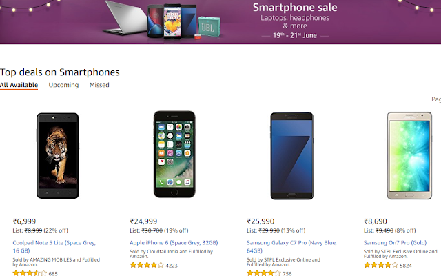 Under the sale, Amazon India is offering Apple iPhone 7 at Rs 42,999 which is otherwise available in the market for Rs 60,000, Apple iPhone SE at Rs 19,999 which otherwise costs Rs 39,000, Apple iPhone 6 at Rs 24,999 which otherwise costs Rs 30,700, Samsung Galaxy C7 Pro is priced at Rs 25,990 against its original costs Rs 29,990, Moto G Plus, 4th Generation is priced at Rs 10,499 against its market price which is Rs 13, 499. OnePlus 3T gets a No Cost EMI option and an exchange offer of Rs 2000.