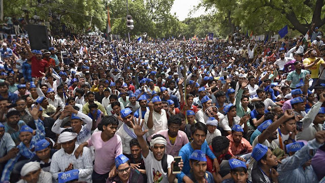 Despite being denied permission by Delhi Police to hold a rally, protesters dressed in blue gathered on the call of Bhim Army Ekta Mission, led by 30-year-old lawyer Chandrashekhar to fight against “oppression” by upper castes.